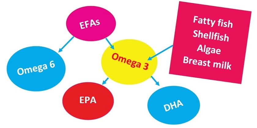 - There are 2 main types of EFAs – omega 3 and omega 6