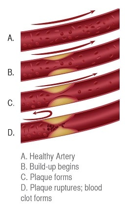 A heart attack, or myocardial infarction, occurs when there is a sudden blockage, usually caused by a clot, in a coronary artery. A coronary artery is a blood vessel that feeds blood to a part of the heart muscle. The interrupted blood flow can cut off blood supply to the heart muscle. If this ‘ischemia’ of the heart happens for more than a few minutes, it can damage or destroy a part of the heart muscle.3