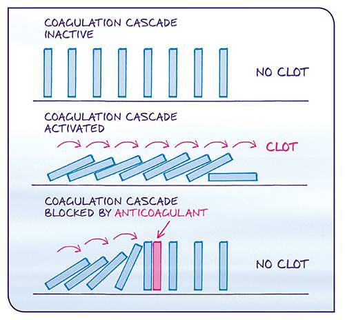 Clots are formed in a process known as coagulation. This is a complex series of steps that must occur in a specific order. By interrupting one or more of these steps it is possible to reduce the likelihood of a clot forming and, thereby decrease the risk of stroke. Medicines that block the coagulation process in this way are known as anticoagulants.