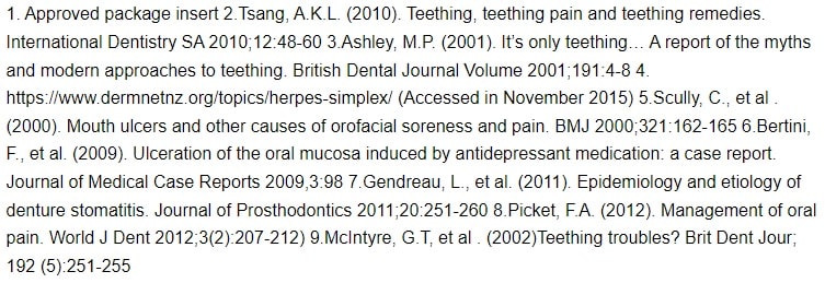 Back to topOral pain is usually characterised by the inflammation of the oral mucosa, due to local or general factors, which may involve the mucosa of the mouth and lips, palate, tongue, floor of the mouth and the gums. One of the most common reasons for oral pain is mouth ulceration. These ulcers are accompanied by painful symptoms and are generally characterised by shallow oval lesions, surrounded by a reddened halo. Mouth ulcers manifest as acute (duration of up to 3 weeks), chronic (more than 3 weeks), or recurrent lesions.5,6